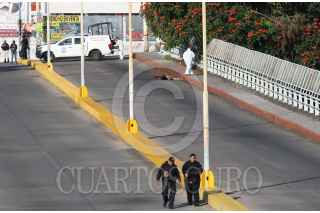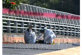 CUERNAVACA, MORELOS, 15NOVIEMBRE2023.- Durante el amanecer de este día, personas que caminaban sobre el Puente 2000 (que une el poniente con el centro de la capital) tuvieron a la vista los cuerpos de dos hombres, amarrados de pies y manos y con señales de violencia extrema, a su lado fue encontrado un mensaje escrito en una cartulina. Al llegar la policía de la capital y los servicios de auxilio pudieron constatar que uno de los hombres ya no tenía signos de vida, mientras el otro sobrevivió al martirio y fue llevado a un hospital para su recuperación. Policía del municipio y elementos de la Guardia Nacional colaboraron acordonando la escena del crimen, más tarde llegaron investigadores y peritos de la Unidad Especializada en la Escena del Crimen de la Fiscalía de Justicia quienes embalaron evidencias encontradas para la averiguación que inicia, finalmente trabajadores del Servicio Médico Forense levantaron el cadáver y fue llevado a la morgue en espera que sea reconocido y reclamado. FOTO: MARGARITO PÉREZ RETANA/CUARTOSCURO.COM