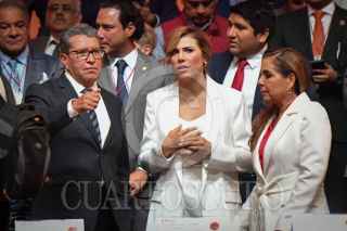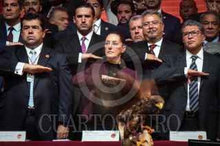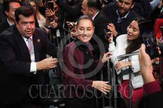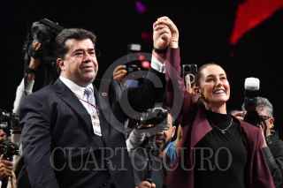 CIUDAD DE MÉXICO, 15NOVIEMBRE2023.- Pablo Haces Barba, senador y líder sindical de la CATEM, y Claudia Sheinbaum, Coordinadora de los Comités de Defensa de la Cuarta Transformación, durante su llegada al XV Congreso Nacional Ordinario de la Confederación Autónoma de Trabajadores y Empleados de México (CATEM) realizado en la Arena Ciudad de México. FOTO: MARIO JASSO/CUARTOSCURO.COM