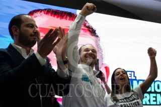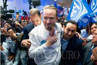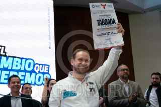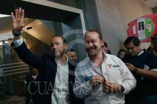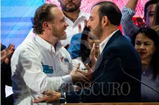 CIUDAD DE MÉXICO, 15NOVIEMBRE2023.- Marko Cortés, presidente nacional del Partido Acción Nacional (PAN), acompañó a Santiago Taboada, alcalde con licencia en Benito Juárez, a su registro como precandidato a jefe de gobierno de la Ciudad de México por la alianza PRI-PAN-PRD. Taboada Cortina expresó que le ganará la ciudad a Clara Brugada y que apoyara totalmente a la próxima presidenta Xóchitl Gálvez. FOTO: GALO CAÑAS/CUARTOSCURO.COM