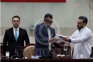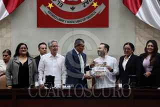 SAN RAYMUNDO JALPAN, OAXACA, 15NOVIEMBRE2023.- En representación del gobernador de Oaxaca, Salomón Jara Cruz, el secretario de gobierno, Jesús Romero López hizo entrega, ante el pleno de la LXV Legislatura local, del primer informe de gobierno. Al recinto arribó un grupo de profesores de la Sección 22 de la Coordinadora Nacional de Trabajadores de la Educación, quienes cerraron los accesos, sin embargo el acto protocolario había concluido y legisladores e invitados salieron rápidamente por otro de los accesos. FOTO: CAROLINA JIMÉNEZ/CUARTOSCURO.COM
