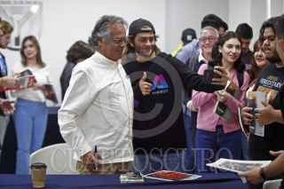 ZAPOPAN, JALISCO, 15NOVIEMBRE2023.- El Fotoperiodista y Director general de la Agencia y Revista Cuartoscuro, Pedro Valtierra, participo en el Congreso Internacional de Comunicación, Lenguajes y Multimedia (CIDCAP 2023), que organiza la Universidad UNIVA y fue uno de los ponentes destacados de Los Lenguajes del Arte, donde hablo sobre fotoperiodismo con los alumnos de ya mencionada alma mater. Posteriormente platico en privado con algunos alumnos, firmo revistas Cuartoscuro y se tomo fotografías. FOTO: FERNANDO CARRANZA GARCIA / CUARTOSCURO.COM