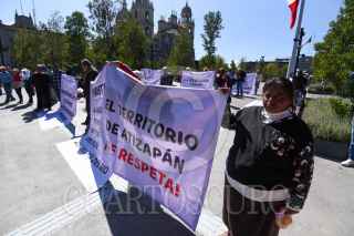 TOLUCA, ESTADO DE MÉXICO, 15NOVIEMBRE2023.- Habitantes del municipio de Santa Cruz Atizapán se manifestaron en la Cámara de Diputados local en donde pidieron su intervención para que se respeten los límites territoriales de este municipio ante el abuso de autoridad y diversas irregularidades por parte de funcionarios del municipio vecino de Almoya del Río. FOTO: CRISANTA ESPINOSA AGUILAR /CUARTOSCURO.COM