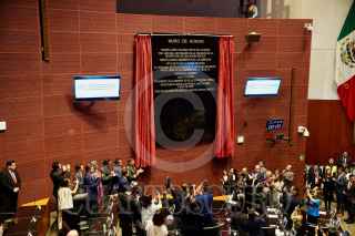 CIUDAD DE MÉXICO, 15NOVIEMBRE2023.- Ana Lilia Rivera, senadora de Morena, junto a los senadores panistas: Xóchitl Gálvez, Julen Rementería, y Josefina Vázquez Mota, durante la develación de inscripciones con letras doradas en el Muro de Honor por el "2023, Año del bicentenario del Heroico Colegio Militar" en el muro de honor durante la sesión plenaria de la Cámara de Senadores. FOTO: CUARTOSCURO.COM