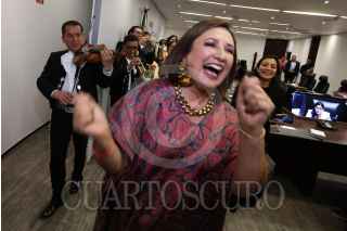 CIUDAD DE MÉXICO, 15NOVIEMBRE2023. - Previo a despedirse del Senado, Xóchitl Gálvez ensayaba su discurso. FOTO: DANIEL AUGUSTO /CUARTOSCURO.COM
