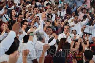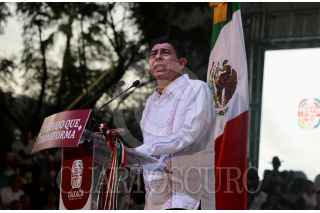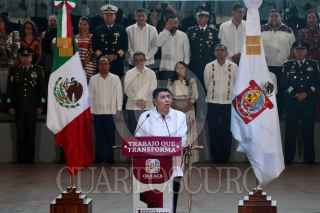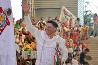 OAXACA, OAXACA, 15NOVIEMBRE2023.- Salomón Jara Cruz, gobernador de Oaxaca, dirigió un mensaje en torno a su primer informe de gobierno, en el auditorio Guelaguetza. Jara Cruz estuvo acompañado del gobernador de Tamaulipas, Américo Villarreal y del subsecretario de Economía federal, Luis Abel Romero López, funcionarios de su gobierno, simpatizantes de su partido y pobladores. FOTO: CAROLINA JIMÉNEZ/CUARTOSCURO.COM