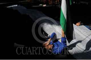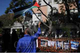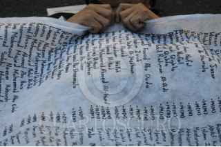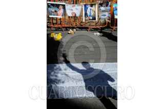 CIUDAD DE MÉXICO, 16NOVIEMBRE2023. - La sombra de un manifestantes se coloca frente a la lista de nombres de los infantes que han muerto a causa de los bombardeos de Israel a Palestina. FOTO: DANIEL AUGUSTO /CUARTOSCURO.COM