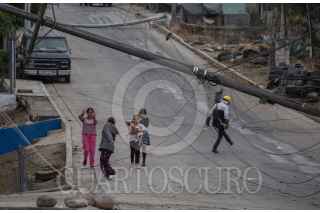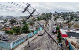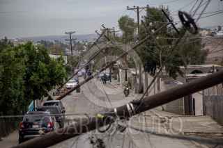 TIJUANA BAJA CALIFORNIA, 16ENERO2023.- Debido a la inesperada lluvia y los fuertes vientos que tomaron por sorpresa a los tijuanenses, en la colonia Leandro Valle, sobre la calle Adolfo Ruiz Cortinez, nueve postes de luz fueron derrumbados por las intensas ráfagas de viento la tarde el miércoles. Dicho hecho provocó que una gran cantidad de vecinos se quedarán sin luz. FOTO: OMAR MARTÍNEZ/ CUARTOSCURO.COM