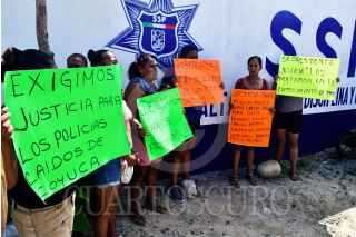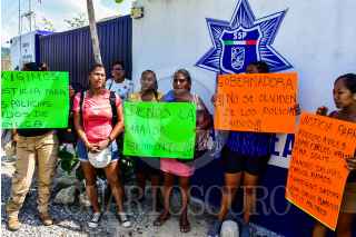 COYUCA DE BENITEZ, GUERRERO. 16NOVIEMBRE2023. - Las viudas y familiares de los 11 policías asesinados el 23 de octubre en la comunidad de El Papayo en Coyuca de Benítez , se manifestaron en el cuartel de la policía en ése municipio, para denunciar que el presidente municipal, Osiel Pacheco Salas, se ha negado en pagar una indemnización justa por la muerte de los policías, los policías no contaban con un seguro de vida, también pidieron también la intervención de la gobernadora del estado, Evelyn Salgado Pineda, para resolver este problema. FOTO: CARLOS CARBAJAL/CUARTOSCURO.COM
