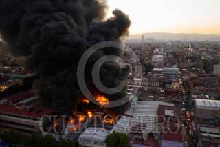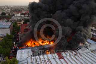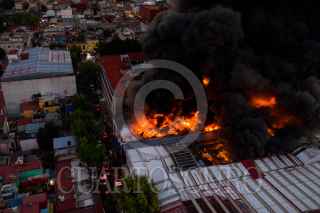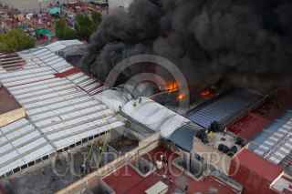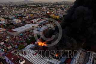 CIUDAD DE MÉXICO, 16NOVIEMBRE2023.- Bomberos de diferentes sectores de la capital y algunas partes de Estado de México enfrentan el incendio dentro de una bodega de calzado, mochilas y artículos de plástico en el Barrio de Tepito, alcaldía Cuauhtémoc. FOTO: GALO CAÑAS/CUARTOSCURO.COM
