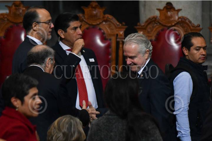 CIUDAD DE MÉXICO, 17NOVIEMBRE2023.- Santiago Creel, coordinador de campaña de Xóchitl Gálvez, precandidata a la presidencia del Frente Amplio por México, acudió como invitado a la ceremonia de toma de protesta de Leonardo Lomelí Vanegas como nuevo rector de la Universidad Nacional Autónoma de México para el periodo 2023-2027. FOTO: MARIO JASSO/CUARTOSCURO.COM