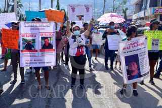 ACAPULCO, GUERRERO, 18NOVIEMBRE2023.- Familiares de 15 personas entre capitanes y tripulación que permanecen en calidad de desaparecidos tras el impacto del huracán Otis en el puerto, bloquearon la avenida Costera Miguel Alemán frente a las instalaciones de la Doceava Región Naval de Acapulco para exigir se agilice su búsqueda. A su vez, hicieron un llamado al presidente de la república Andrés Manuel López Obrador para la localización de sus familiares. FOTO: CARLOS CARBAJAL/CUARTOSCURO.COM