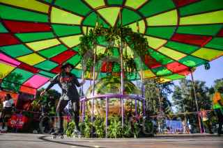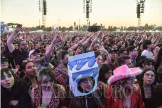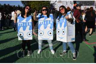 CIUDAD DE MÉXICO, 18NOVIEMBRE2023.- Tres mujeres disfrazadas de caja de leche del vídeo "Coffee & TV" de la banda Blur, en el festival de música "Corona Capital 2023" celebrado en las instalaciones del Autódromo Hermanos Rodríguez. FOTO: MARIO JASSO/CUARTOSCURO.COM