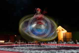 RUB AL-JALI, EMIRATOS ÁRABES UNIDOS, 18NOVIEMBRE2023.- Un bailarín presenta su show en el campamento para turistas instalado en el desierto Rub-Al-Jali. FOTO: GRACIELA LÓPEZ /CUARTOSCURO.COM