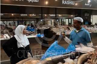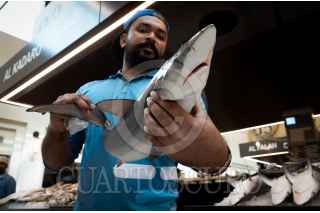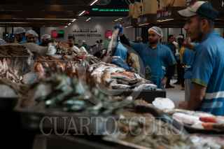ABU DHABI, EMIRATOS ÁRABES UNIDOS, 18NOVIEMBRE2023.- Migrantes de Egipto, India y países aledaños a Dubai, trabajan en en el Mercado Central de Pescado "Fish Market", remodelado en este año, después de ser remolido en 2022 y fundado en 1990. FOTO: GRACIELA LÓPEZ /CUARTOSCURO.COM