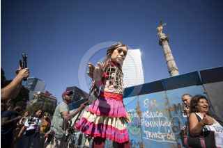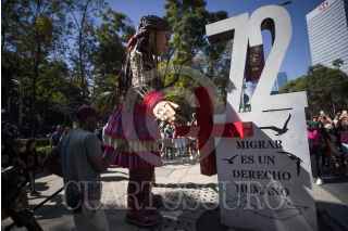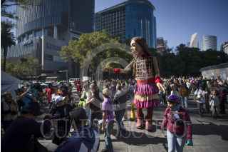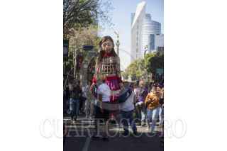 CIUDAD DE MÉXICO, 19NOVIEMBRE2023.- La Pequeña Amal recorrió avenida Reforma, desde la Diana Cazadora hasta la Glorieta de las Desaparecidas y Desaparecidos, cómo parte de las últimas actividades que realizará en el país tras recorrer 14 países. La marioneta monumental representa a una niña siria refugiada y su objetivo es exigir a los diferentes gobiernos el derecho a migrar sin ser estigmatizados sin ser criminalizados. FOTO: MOISÉS PABLO/CUARTOSCURO.COM