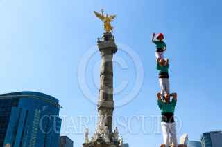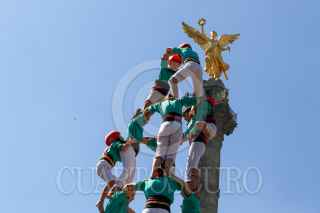 CIUDAD DE MÉXICO, 19NOVIEMBRE2023.- Los Castellers de Vilafranca realizaron cinco de sus tradicionales castillos humanos en la Glorieta del Ángel de la Independencia. Los ciudadanos catalanes destacaron la importancia de este encuentro con la cultura mexicana, ya que señalan que ambos pueblos comparten muchas tradiciones. Informaron que realizarán sus "castells" en el Monumento a la Revolución, Zócalo y Teotihuacan. FOTO: MOISÉS PABLO/CUARTOSCURO.COM