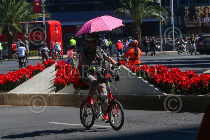 CIUDAD DE MÉXICO, 19NOVIEMBRE2023.- Los camellones de Reforma fueron engalanados con flores de nochebuena, a unas semanas de que la capital festeje las fiestas navideñas. Ciclistas aprovecharon para pasear en bicicleta. FOTO: MOISÉS PABLO/CUARTOSCURO.COM