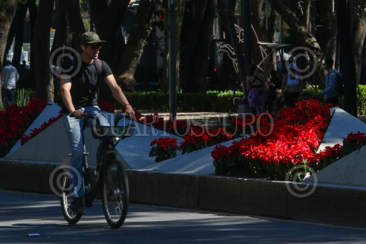 CIUDAD DE MÉXICO, 19NOVIEMBRE2023.- Los camellones de Reforma fueron engalanados con flores de nochebuena, a unas semanas de que la capital festeje las fiestas navideñas. Ciclistas aprovecharon para pasear en bicicleta. FOTO: MOISÉS PABLO/CUARTOSCURO.COM