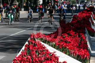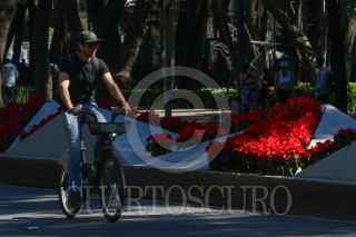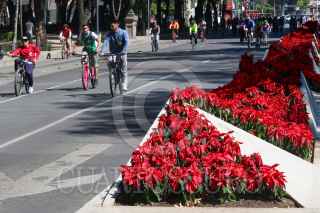 CIUDAD DE MÉXICO, 19NOVIEMBRE2023.- Los camellones de Reforma fueron engalanados con flores de nochebuena, a unas semanas de que la capital festeje las fiestas navideñas. Ciclistas aprovecharon para pasear en bicicleta. FOTO: MOISÉS PABLO/CUARTOSCURO.COM