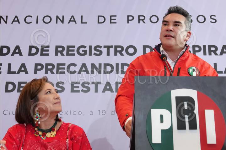 CIUDAD DE MÉXICO, 19NOVIEMBRE2023.- Alejandro Moreno, presidente del PRI, durante la entrega de la constancia de la senadora Xóchitl Gálvez como precandidata a la presidencia del PRI en más instalaciones del Hotel Grand Fiesta Americana. FOTO: GRACIELA LÓPEZ /CUARTOSCURO.COM
