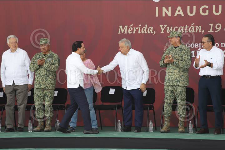 MÉRIDA, YUCATÁN 19NOVIEMBRE2023.- Hoy por la mañana el Presidente de la República, Andrés Manuel López Obrador, acompañado del gobernador del estado de Yucatán, Mauricio Vila Dosal y otras autoridades del gabinete federal; inauguraron el Gran Parque de la Plancha, el cual cuenta con áreas verdes, juegos infantiles, lago artificial, mercado gastronómico, skatepark, zonas deportivas, museos, entre otros atracciones. FOTO: MARTÍN ZETINA/CUARTOSCURO.COM