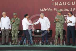 MÉRIDA, YUCATÁN 19NOVIEMBRE2023.- Hoy por la mañana el Presidente de la República, Andrés Manuel López Obrador, acompañado del gobernador del estado de Yucatán, Mauricio Vila Dosal y otras autoridades del gabinete federal; inauguraron el Gran Parque de la Plancha, el cual cuenta con áreas verdes, juegos infantiles, lago artificial, mercado gastronómico, skatepark, zonas deportivas, museos, entre otros atracciones. FOTO: MARTÍN ZETINA/CUARTOSCURO.COM