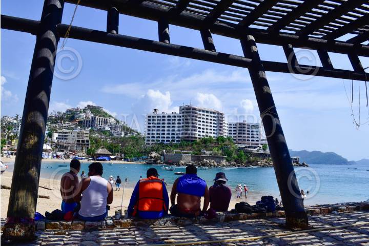 ACAPULCO, GUERRERO, 19NOVIEMBRE2023.- Las populares playas de Caleta y Caletilla, ubicadas en la zona tradicional de Acapulco, poco a poco han ido volviendo a normalidad recibiendo a algunos turistas, que contrasta con las embarcaciones varadas en las playas y destruidas, entre otras afectaciones que causó el huracán Otis, en este destinó de playa. FOTO: CARLOS ALBERTO CARBAJAL/CUARTOSCURO.COM