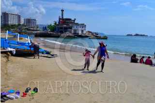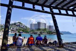ACAPULCO, GUERRERO, 19NOVIEMBRE2023.- Las populares playas de Caleta y Caletilla, ubicadas en la zona tradicional de Acapulco, poco a poco han ido volviendo a normalidad recibiendo a algunos turistas, que contrasta con las embarcaciones varadas en las playas y destruidas, entre otras afectaciones que causó el huracán Otis, en este destinó de playa. FOTO: CARLOS ALBERTO CARBAJAL/CUARTOSCURO.COM
