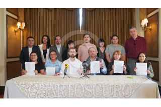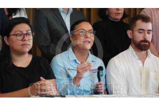MONTERREY, NUEVO LEÓN, 20NOVIEMBRE2023.- Tatiana Clohutier y miembros de MORENA en Nuevo León, ofrecieron una rueda de prensa donde exigen que se respete lo establecido en el Artículo 122 constitucional, el cual garantiza la facultad al Congreso de Nuevo León designar a un gobernador interino por seis meses. FOTO: CUARTOSCURO.COM