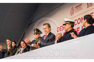 XALAPA, VERACRUZ. 20NOVIEMBRE2023.- El gobernador Cuitláhuac García encabezó el desfile cívico militar por el 113 aniversario de La Revolución Mexicana. Hubo una protesta de maestros quienes reclamaron se revise el pago al salario. FOTO: YERANIA ROLÓN/CUARTOSCURO.COM
