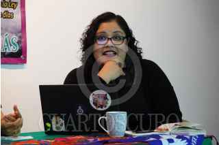 CIUDAD DE MÉXICO, 21NOVIEMBRE2023.- Alexia Moreno Domínguez, educadora en el Caracol: Mujeres en situación de calle, durante su participación en la Mesa Comunicación e Información de la Mujer y libertad de expresión en el Foro Violencias de Género Interseccionalidad y Desafíos del Estado realizado en la Casa de la Solidaridad. FOTO: GRACIELA LÓPEZ /CUARTOSCURO.COM