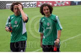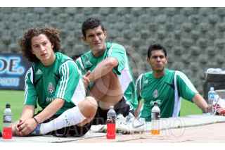 MÉXICO, D.F. 29MAYO2007.- Los jugadores Oswaldo Masa Rodriguez, Andrés Guardado y Oswaldo Sánchez al término de el entrenamiento en el Centro Pegasso. FOTO: PAOLA HIDALGO/CUARTOSCURO.COM