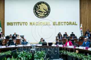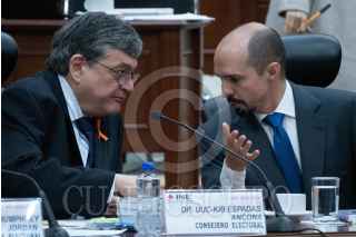 CIUDA DE MÉXICO, 22NOVIEMBRE2023.- El consejero electoral Uuc-Kib Espadas conversa con el consejero Arturo Castillo Loza durante la sesión ordinaria del Instituto Nacional Electoral (INE) en la sede central del organismo electoral. FOTO: GALO CAÑAS/CUARTOSCURO.COM