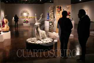 CIUDAD DE MÉXICO, 23NOVIEMBRE2023.- El Museo de Arte Popular presenta la exposición Arte/Sano ÷ Artistas 7.0, que tiene por objetivo desmostar que los campos de las Artesanías y el Arte pueden cohabitar en un mismo espacio ya que no son actividades diferentes. Las piezas exhibidas fueron elaboradas por 44 equipos de creadores, en diferentes ramas artesanales: barro, cerámica, textiles, fibras naturales, cera, vidrio, cartonería, y rótulos. La Bienal se inaugurará el 25 de noviembre de 2023 y cerrará el 25 de febrero de 2024. FOTO: MOISÉS PABLO/CUARTOSCURO.COM