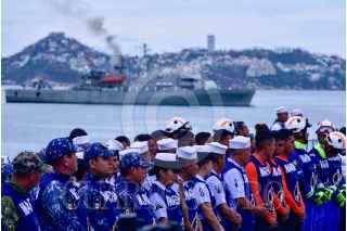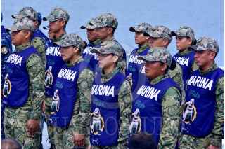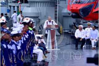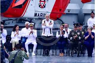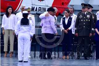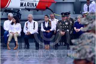 ACAPULCO, GUERRERO, 23NOVIEMBRE2023.- Andrés Manuel López Obrador, Presidente de México; José Rafael Ojeda Durán, secretario de la Marina; Evelyn Salgado Pineda, gobernadora de Guerrero, y Luis Cresencio Sandoval, secretario de la Defensa, encabezaron el Día de la Armada, en las instalaciones de la Doceava Región Naval de Acapulco, ahí rindieron un homenaje a marinos fallecidos durante el huracán Otis. FOTO: CARLOS ALBERTO CARBAJAL/CUARTOSCURO.COM