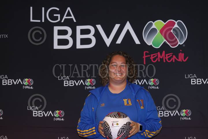 CIUDAD DE MÉXICO, 23NOVIEMBRE2023. La DT Milagros Martinez del Club Tigres durante el Día de Medios de la Gran Final del Apertura 2023 de la Liga BBVA MX Femenil, entre Tigres y América. FOTO: EDGAR NEGRETE LIRA/CUARTOSCURO.COM