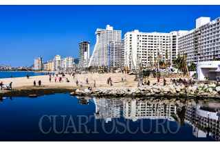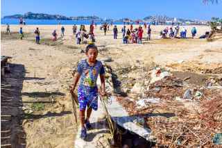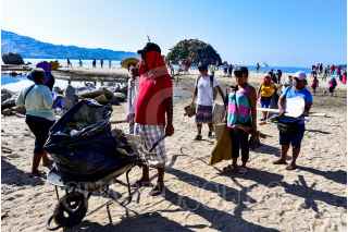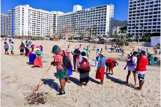 ACAPULCO, GUERRERO, 24NOVIEMBRE2023.- Prestadores de servicios turísticos de playas del puerto de Acapulco, se organizaron para realizar una limpieza de la franja de arena en la playa El Morro, luego de las toneladas de basura y escombro que el huracán Otis dejo en las playas de Acapulco, también exigieron apoyos al gobierno apoyos, porque el censo qué se realizo para qué afectados reciban apoyos no les garantiza nada y nesecitan empezar a trabajar. FOTO: CARLOS CARBAJAL/CUARTOSCURO.COM