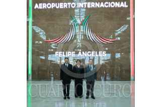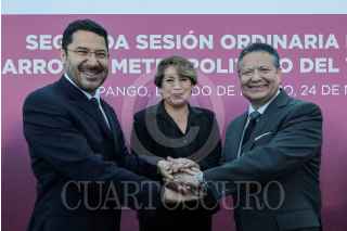 ZUMPANGO, ESTADO DE MÉXICO, 24NOVIEMBRE2023.- Marti Batres Guadarrama, jefe de gobierno de la ciudad de México; Delfina Gómez, gobernadora del Estado de México, y Julio Menchaca, gobernador de Hidalgo, participaron en la Segunda Sesión Ordinaria del Consejo de Desarrollo Metropolitano del Valle de México en el Aeropuerto Internacional Felipe Ángeles (AIFA). FOTO: GALO CAÑAS/CUARTOSCURO.COM