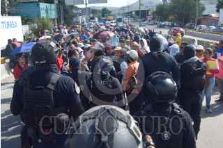 CHILPANCINGO, GUERRERO, 24NOVIEMBRE2023.- Maestros integrantes de la Sección XVIIII del Sindicato Único de Servidoras Públicos del Estado de Guerrero (SUSPEG), marcharon y bloquearon la autopista del sol, a la altura del Hotel Holiday Inn y del Parador del Márquez. Los maestros avanzaron en marcha sobre el carril Norte-Sur de la Autopista del Sol, y al llegar a la altura del Hotel en mención de mantuvieron por un lado de 40 minutos. Posteriormente continuaron hasta llegar al punto conocido como el Parador del Marqués. Los inconformes exigieron el pago del retroactivo al mes de enero del retroactivo de la nivelación salarial, en una sola emisión. FOTO: DASSAEV TÉLLEZ ADAME/CUARTOSCURO.COM