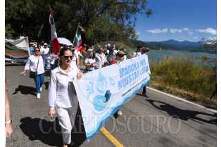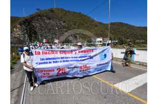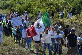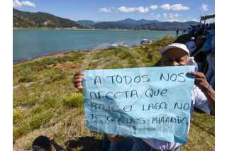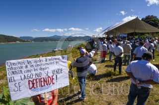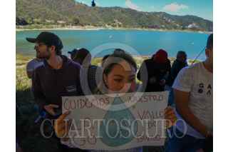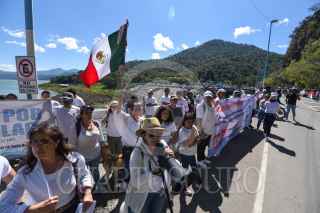 VALLE DE BRAVO, ESTADO DE MÉXICO, 25NOVIEMBRE2023.- Pobladores de Valle de Bravo preocupados por la situación que vive la Presa Miguel Alemán, que ha alcanzado su mínimo histórico en los últimos 25 años, se manifestaron en la cortina de la presa para exigir a las autoridades se haga algo para salvar la presa, la cual forma parte del Sistema Cutzamala y abastece del vital líquido a la CDMX. FOTO: CRISANTA ESPINOSA AGUILAR /CUARTOSCURO.COM