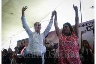 CIUDAD DE MÉXICO, 26NOVIEMBRE2023.- Claudia Sheinbaum Pardo, candidata a la presidencia por Morena y Clara Brugada, candidata a la jefatura de Gobierno encabezaron evento ante decenas de simpatizantes en la Cancha de Beisbol de Utopía Meyehualco. FOTO: ANDREA MURCIA /CUARTOSCURO.COM