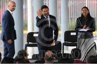 CIUDAD DE MÉXICO, 27NOVIEMBRE2023. - Andrés Lajous, secretario de Movilidad y Evelyn Parra, alcaldesa de Venustiano Carranza, acompañaron a Martí Batres para la inauguración del Cetram de San Lázaro. FOTO: DANIEL AUGUSTO /CUARTOSCURO.COM