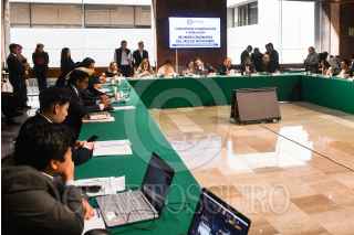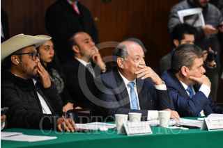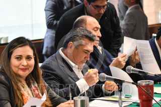 CIUDAD DE MÉXICO, 28NOVIEMBRE2023.- Los diputados de Morena: Manuel Vázquez Arellano; Juan Ramiro Robledo e Ismael Brito, durante la reunión de trabajo de la Comisión de Gobernación en la Cámara de Diputados, en la que se aprobó el decreto de extinción de la Agencia de Noticias del Estado Mexicano Notimex, enviado por el gobierno federal. FOTO: MARIO JASSO/CUARTOSCURO.COM