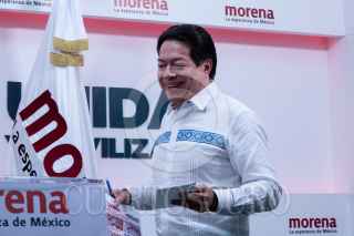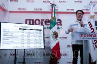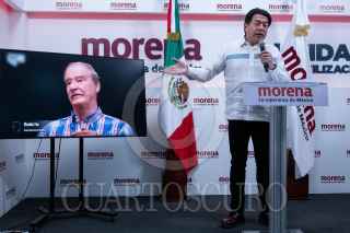 CIUDAD DE MÉXICO, 28NOVIEMBRE2023.- Mario Delgado, presidente nacional de Movimiento de Regeneración Nacional (Morena), ofreció conferencia de prensa en la sede central del partido para dar información sobre la actual precampaña de la ex jefa de gobierno de la Ciudad de México, Claudia Sheinbaum; la entrega de constancias a precandidatos a las elecciones de los estados para 2024, así como su posición ante la “censura” de la cuenta del ex presidente Vicente Fox, a quien refirió como un gran vocero de la derecha mexicana. FOTO: GALO CAÑAS/CUARTOSCURO.COM