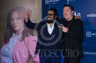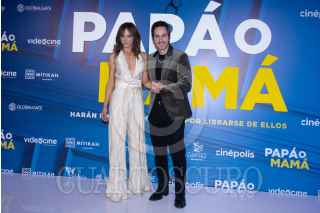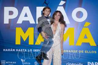 CIUDAD DE MÉXICO, 28NOVIEMBRE2023.- Silvia Navarro y su hijo León su paso por la alfombra de la película "Papá o Mamá" en su noche de estreno en un cine en Plaza Carso. FOTO: EDGAR NEGRETE LIRA/CUARTOSCURO.COM
