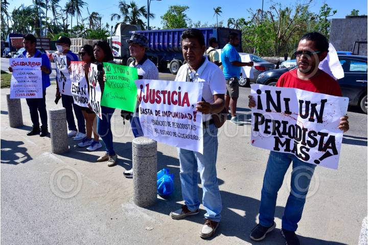 ACAPULCO, GUERRERO, 29NOVIEMBRE2023.- Reporteros de Acapulco se manifestaron en la avenida Costera de Acapulco, para exigir el esclarecimiento del ataque armado contra los periodistas; Víctor Mateo, Óscar Guerrero, Jesús de la Cruz y Héctor Camacho, agredidos por hombres armados ayer en Chilpancingo, cuánto regresaban de cubrir un asesinato. Los reporteros exigieron a las autoridades garantías para ejercer la libertad de expresión. FOTO: CARLOS ALBERTO CARBAJAL/CUARTOSCURO.COM