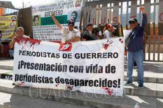 CHILPANCINGO, GUERRERO, 29NOVIEMBRE2023.- Periodistas de distintos medios de comunicación marcharon este miércoles en protesta por el ataque armado contra 4 comunicadores, registrado el medio día de este martes, y aseguraron que con sus mensajes de denostación hacia los periodistas en sus conferencias mañaneras, el presidente Andrés Manuel López Obrador provoca los hechos violentos contra los integrantes de ese sector. La jornada del martes, alrededor del medio día, 4 reporteros fueron agredidos a balazos cuando regresaban al centro de la ciudad capital, tras dar cobertura a un hecho violento en la colonia 4 de abril. De los 4 comunicadores, quienes viajaban en un vehículo Jetta color negro, tres resultaron con heridas de bala, de los cuales dos ya fueron dados de alta. Los periodistas partieron en marcha desde las oficinas del Sindicato Nacional de Redactores de la Prensa (SNRP) delegación 17, y se trasladaron a las instalaciones del Ayuntamiento de Chilpancingo, donde exigieron respeto a la libertad de expresión y un alto a las agresiones contra ese sector. FOTO: DASSAEV TÉLLEZ ADAME/CUARTOSCURO.COM