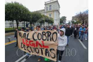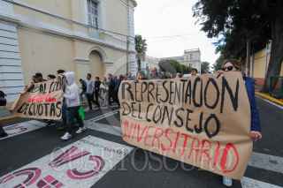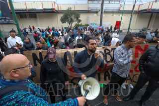TOLUCA, ESTADO DE MÉXICO, 29NOVIEMBRE2023.- Integrantes del Sindicato Independiente de Maestros de la UAEMÉX protestaron en el edificio de Rectoría exigiendo un alto al hostigamiento laboral y corrupción, despidos injustificados, m, pidieron entablar diálogo con el rector Eduardo Barrera Díaz. FOTO: CRISANTA ESPINOSA AGUILAR /CUARTOSCURO.COM