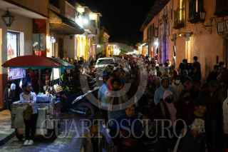 SAN CRISTÓBAL DE LAS CASAS, CHIAPAS, 29NOVIEMBRE2023.- Población organizada realizó esta noche una manifestación pacífica exigiendo la paz en el territorio chiapaneco. A los gobernantes en los diferentes niveles de gobierno les reclamaban justicia y seguridad mientras caminaban por las calles principales de la ciudad. Al finalizar la marcha como acto simbólico de rechazo las omisiones de los gobernantes quemaron propaganda electoral en el centro histórico frente a turistas y población. FOTO: ISABEL MATEOS /CUARTOSCURO.COM