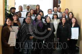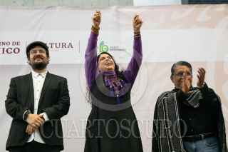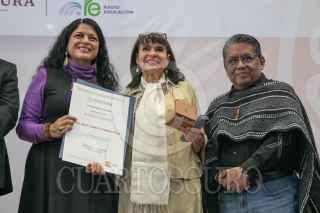 CIUDAD DE MÉXICO, 30NOVIEMBRE2023.- Jesús Alejo, director, Director General de Radio Educación, y Alejandra Frausto, secretaria de Cultura federal, celebraron los 99 años de Radio Educación en el Complejo Cultural Los Pinos, ahí entregaron reconocimientos a trabajadores de esa institución que han trabajado hasta de 10 a 45 años. FOTO: MOISÉS PABLO/CUARTOSCURO.COM